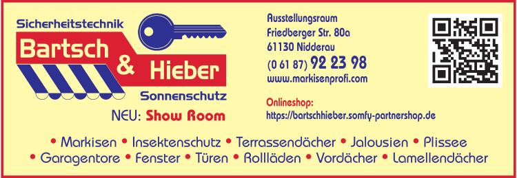 Die Adresse von Bartsch & Hieber GbR Rollladen lautet: Friedberger Str. 80 a, 61130 Nidderau