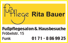 Bauer Rita bietet Fußpflege an.