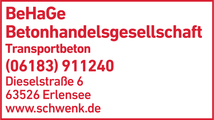 BeHaGe Betonhandelsgesellschaft mbH 06183 9 11 24-0 Erlensee Dieselstr. 6 63526 Rückingen
