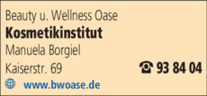 Die Adresse von Beauty u. Wellness Oase Borgiel lautet: Kaiserstr. 69, 76437 Rastatt