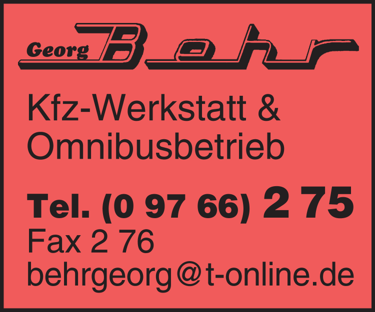 Behr Georg Omnibusse - KFZ-Werkstatt 09766 2 75 Großbardorf Vorderes Tor 2 97633