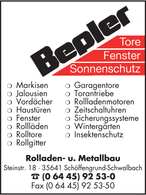 Bepler Rollladenbau 06445 92 53-0 Schöffengrund-Schwalbach Steinstr. 18 35641 Schwalbach 2 5 4