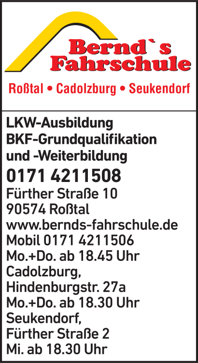 Bernd's Fahrschule Ferienfahrschule 0171 4 21 15 08 Roßtal Fürther Str. 10 90574