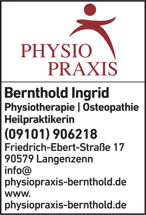 Die Adresse von Bernthold Ingrid Osteopathie lautet: Friedrich-Ebert-Str. 17, 90579 Langenzenn