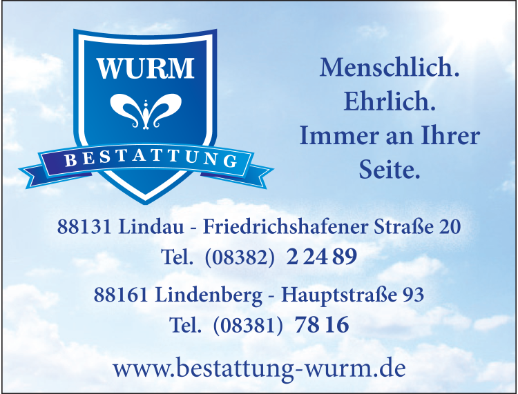 Die Adresse von Bestattung Wurm e.K. lautet: Friedrichshafener Str. 20, 88131 Lindau