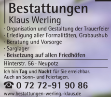 Die Adresse von Bestattungen Klaus Werling GmbH lautet: Hinterstr. 56, 76777 Neupotz