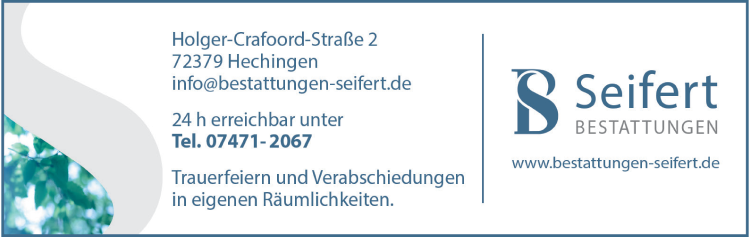 Die Adresse von Bestattungen Seifert lautet: Holger-Crafoord-Str. 2, 72379 Hechingen