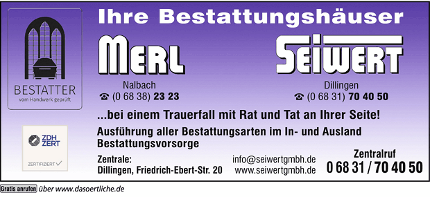 | Ihre Bestattungshäuser Merl u. Seiwert - Ausführung aller Bestattungsarten im In- u. Ausland - Bestattungsvorsorge |