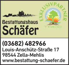 Die Adresse von Bestattungshaus Schäfer lautet: Louis-Anschütz-Str. 17, 98544 Zella-Mehlis