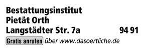 Die Adresse von Bestattungsinstitut Pietät Orth lautet: Langstädter Str. 7 a, 64850 Schaafheim