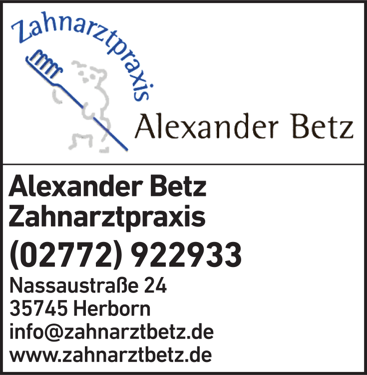 Die Adresse von Betz Alexander Zahnarztpraxis lautet: Nassaustr. 24, 35745 Herborn