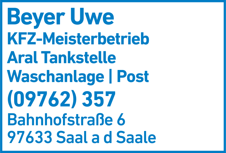 Die Adresse von Beyer Uwe Autowerkstatt lautet: Bahnhofstr. 6, 97633 Saal