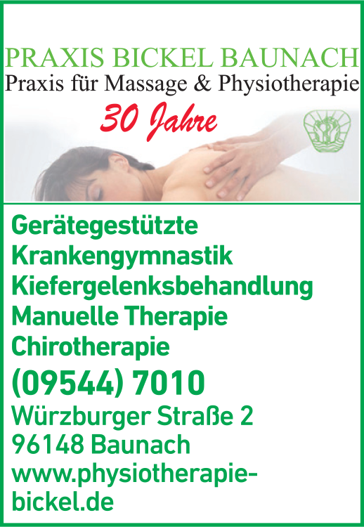 Bickel Norbert Praxis für Physiotherapie 09544 70 10 Baunach Würzburger Str. 2 96148 de.teleauskunft.oetb.webapp2.detail.Graphic@42e015ee