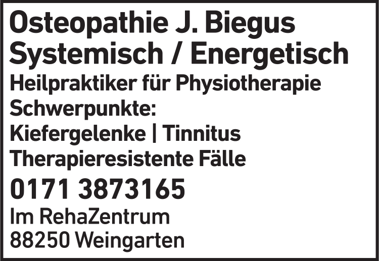 Biegus Josef HP für Physiotherapie 0171 3 87 31 65 Weingarten Sauterleutestr. (im Rehazentrum) 36 88250 de.teleauskunft.oetb.webapp2.detail.Graphic@1b0a8165