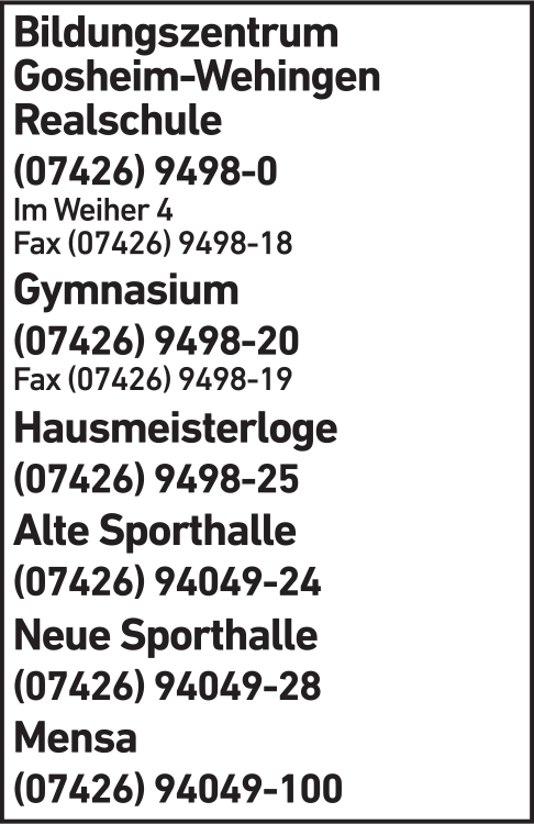 Wie lautet die Adresse von Bildungszentrum Gosheim-Wehingen?