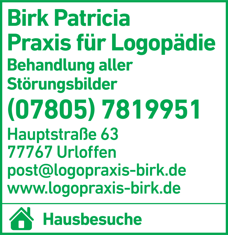 Birk Patricia Praxis für Logopädie 07805 7 81 99 51 Urloffen Hauptstr. 63 77767 Urloffen