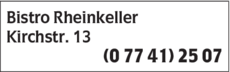 Bistro Rheinkeller Sascha Schatz 07741 25 07 Küssaberg Kirchstr. 13 79790 Kadelburg