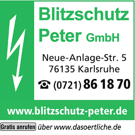 Die Adresse von Blitzschutz Peter GmbH lautet: Neue-Anlage-Str. 5, 76135 Karlsruhe