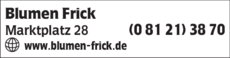 Die Adresse von Blumen Frick lautet: Marktplatz 28, 85570 Markt Schwaben