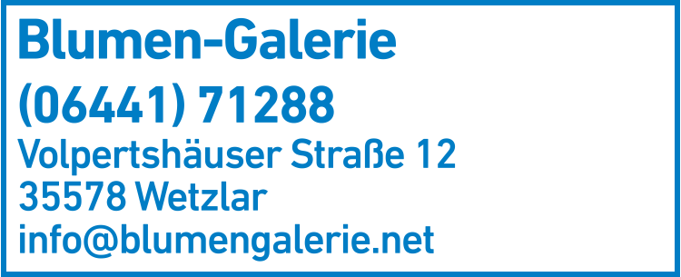 Blumen Galerie Dirk und Markus Kloft GbR 06441 7 12 88 Wetzlar Volpertshäuser Str. 12 35578