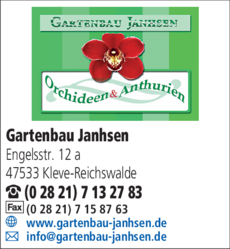 Die Adresse von Blumen Janhsen lautet: Engelsstr. 12 a, 47533 Kleve