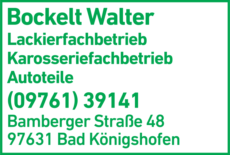 Bockelt Walter Autolackiererei 09761 3 91 41 Bad Königshofen Bamberger Str. 48 97631