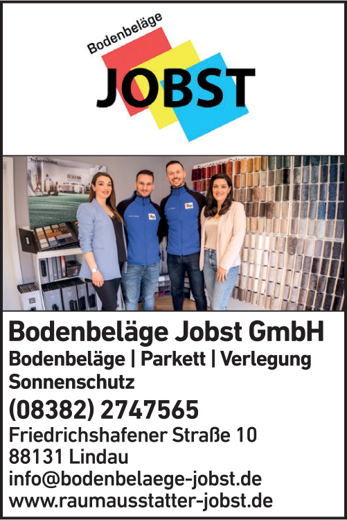 Bodenbeläge Jobst GmbH 08382 2 74 75 65 Lindau Friedrichshafener Str. 10 88131 Aeschach de.teleauskunft.oetb.webapp2.detail.Graphic@4dce55b