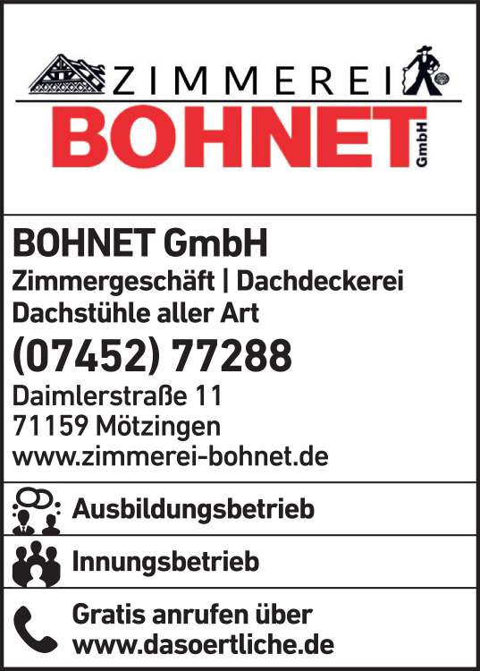 Bohnet GmbH Zimmergeschäft + Dachdecker 07452 7 72 88 Mötzingen Daimlerstr. 11 71159 de.teleauskunft.oetb.webapp2.detail.Graphic@7253d5cd