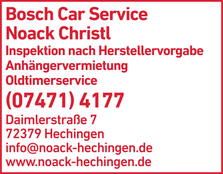 Die Adresse von Bosch Car Service Inh. Noack Christl lautet: Daimlerstr. 7, 72379 Hechingen