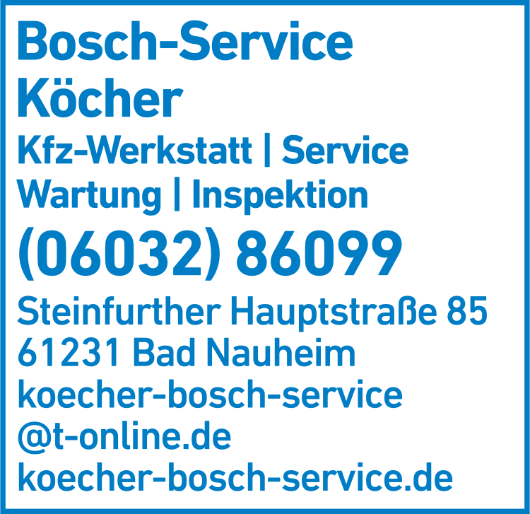 Bosch Service Manfred Köcher Car Service 06032 8 60 99 Bad Nauheim-Steinfurth Steinfurther Hauptstr. 85 61231 Steinfurth de.teleauskunft.oetb.webapp2.detail.Graphic@5be2112c 5 5 1