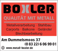 Boxler Metallbau bietet Metallbau, Metallverarbeitung, Stahlbau, Carports, Balkone, Geländer, Blechbearbeitung, Vordach, Terrassen und Glasbau an.