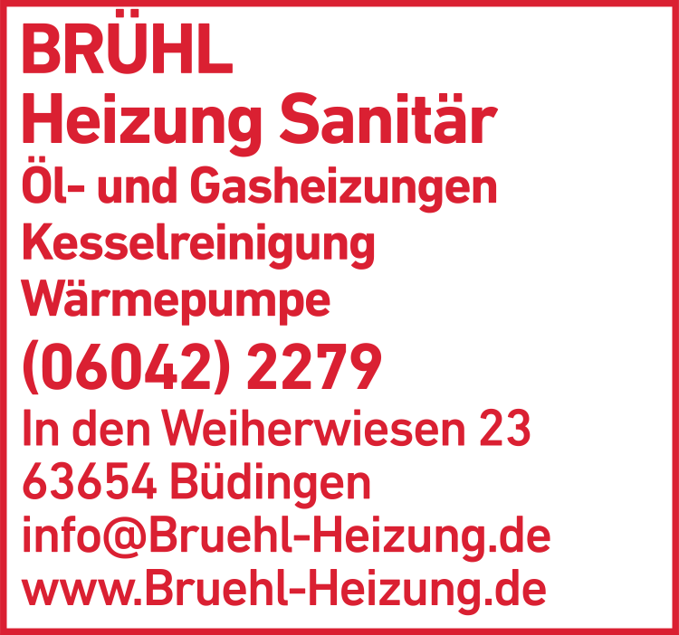 Die Adresse von Brühl, Inh. Alexej Bergstreißer Heizung Sanitär-Kundendienst lautet: In den Weiherwiesen 23, 63654 Büdingen