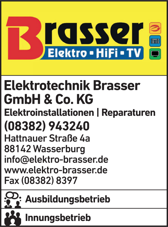 Die Adresse von Brasser TV - Hifi - Elektro lautet: Hattnauer Str. 4 A, 88142 Wasserburg
