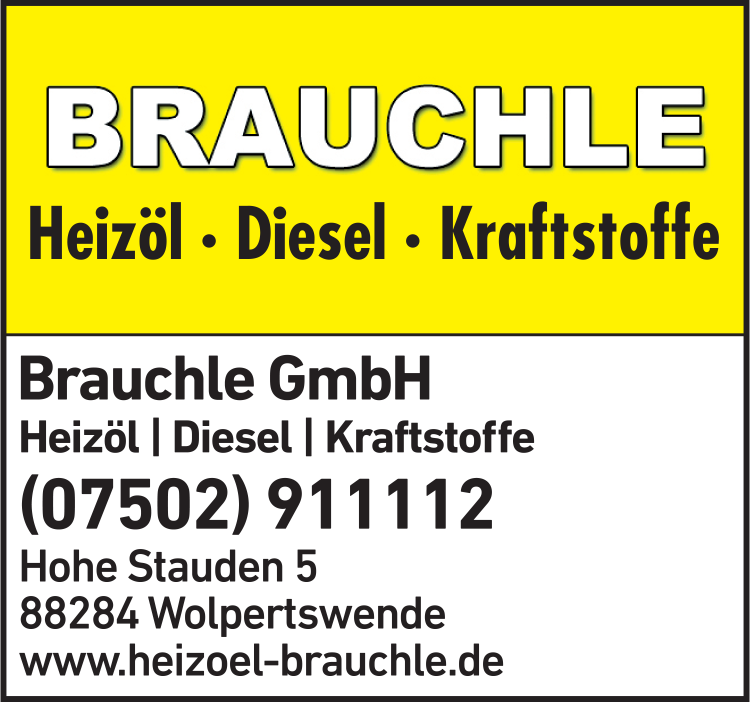 Die Adresse von Brauchle GmbH Brennstoffe lautet: Hohe Stauden 5, 88284 Wolpertswende