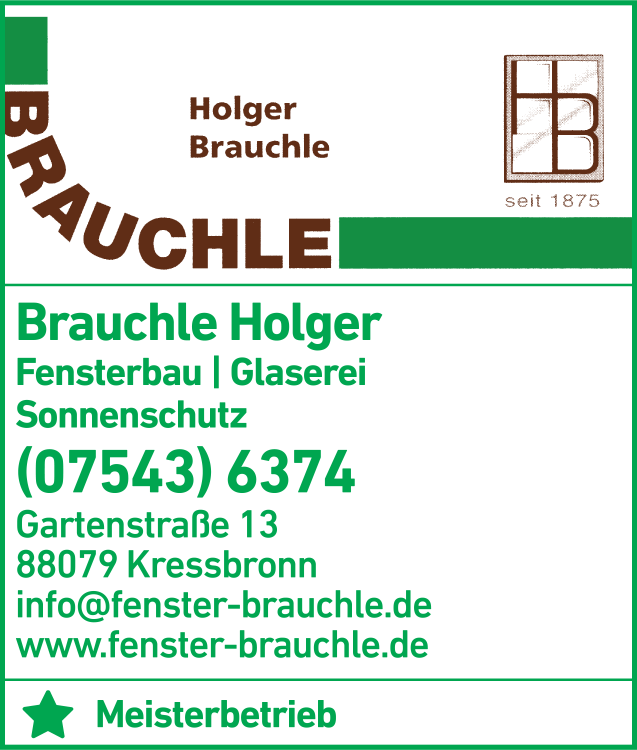 Die Adresse von Brauchle Holger Glaserei + Fensterbau lautet: Gartenstr. 13, 88079 Kressbronn