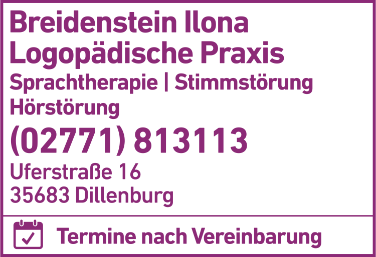 Breidenstein Ilona Logopädin 02771 81 31 13 Dillenburg Uferstr. 16 35683