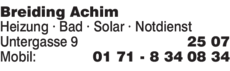 Wie lautet die Adresse von Breiding Achim Heizung?