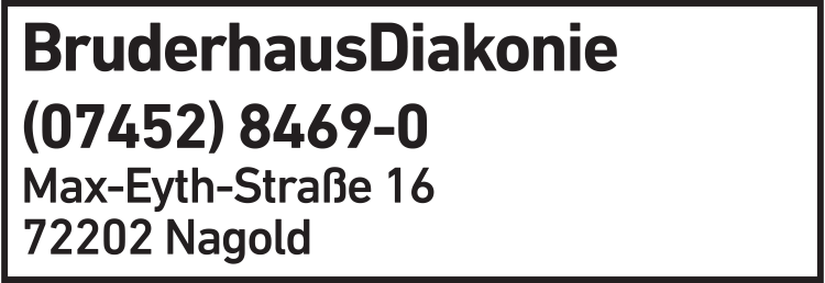 Die Adresse von BruderhausDiakonie lautet: Max-Eyth-Str. 16, 72202 Nagold