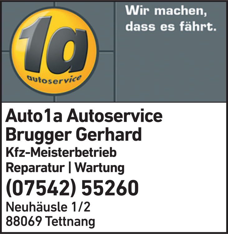 Die Adresse von Brugger Gerhard Auto1a Autoservice lautet: Neuhäusle 1/2, 88069 Tettnang