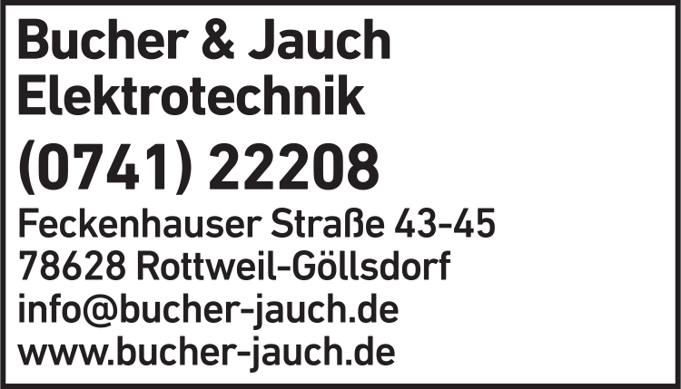 Die Adresse von Bucher & Jauch Elektrotechnik lautet: Feckenhauser Str. 43-45, 78628 Rottweil