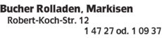 Die Adresse von Bucher Rolladen lautet: Robert-Koch-Str. 12, 85435 Erding