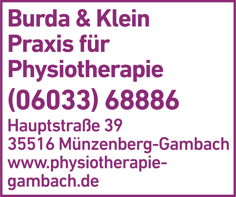 Burda & Klein Praxis für Physiotherapie 06033 6 88 86 Münzenberg-Gambach Hauptstr. 39 35516 Gambach de.teleauskunft.oetb.webapp2.detail.Graphic@6f6ed484