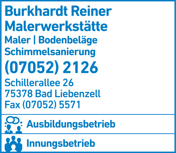 Burkhardt Reiner Malerwerkstätte 07052 21 26 Bad Liebenzell Schillerallee 26 75378