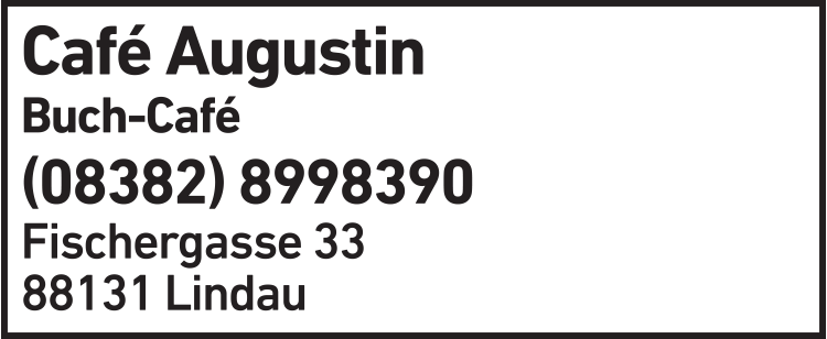 Café Augustin 08382 8 99 83 90 Lindau-Insel Fischergasse 33 88131 Insel