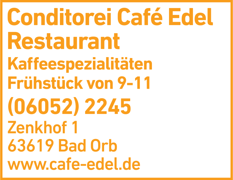Die Adresse von Café Edel KG Restaurant lautet: Zenkhof 1, 63619 Bad Orb