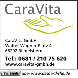 Die Adresse von CaraVita GmbH lautet: Walter Wagner Platz 4, 66292 Riegelsberg