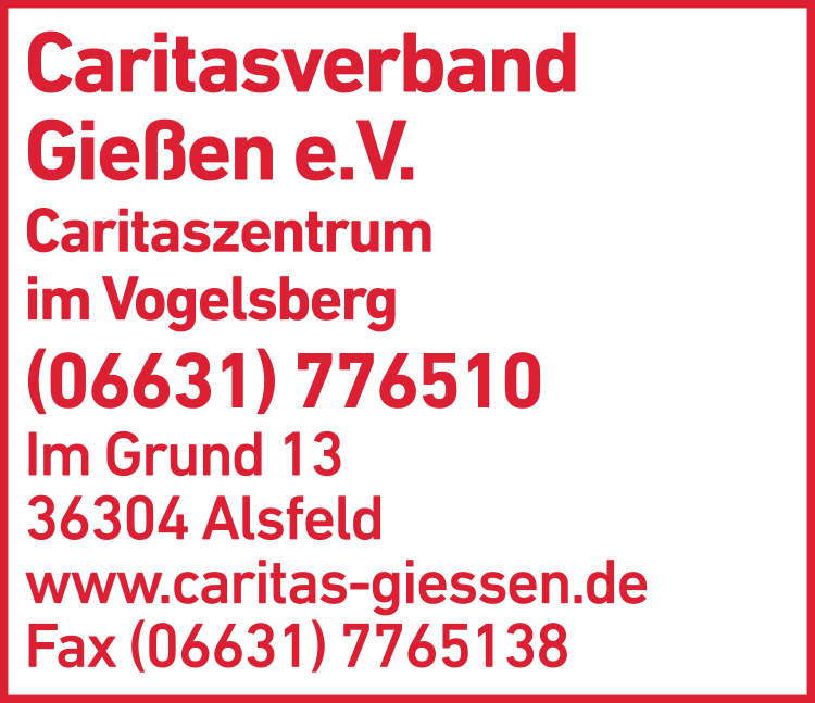 Caritasverband Gießen e.V. in Alsfeld 06631 7 76 51-0 Alsfeld Im Grund 13 36304