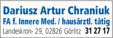 Wie lautet die Adresse von Chraniuk Dariusz Artur Internist?