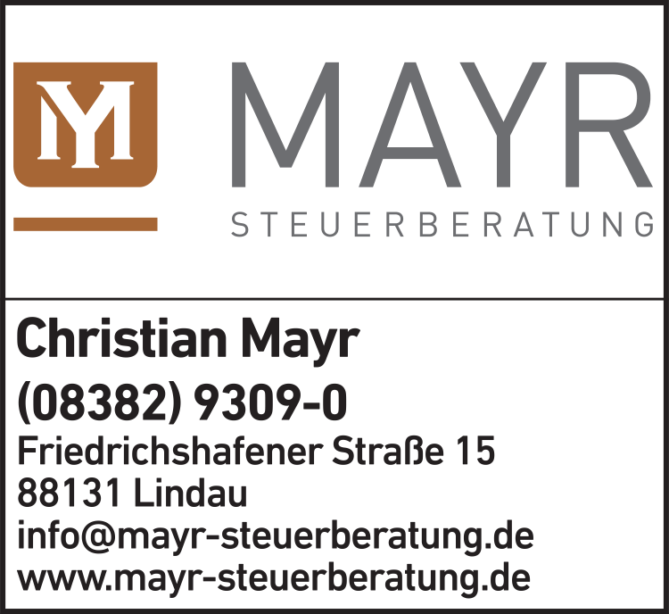 Die Adresse von Christian Mayr Steuerberater lautet: Friedrichshafener Str. 15, 88131 Lindau