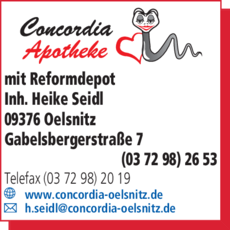Die Concordia-Apotheke von Inhaberin Heike Seidl bietet Ihnen ein umfassendes Angebot an Medikamenten für viele verschiedene Einsatzgebiete an. Die Auswahl an freien Arzneimitteln reicht hierbei von Schmerzmitteln führender Hersteller bis hin zu verschiedenen Erkältungspräparaten. Aber auch in Sachen Naturheilmittel ist die Apotheke gut sortiert und bietet beispielsweise hochwertige Bachblüten oder Schüssler-Salze an. Darüber hinaus sind vor Ort homöopathische Taschenapotheken erhältlich, mit denen Sie für viele unterschiedliche Beschwerden gerüstet sind. Ergänzend hierzu gehören auch Aromaöle und Räuchermischungen zum Sortiment des Unternehmens. Selbstverständlich helfen Ihnen die Mitarbeiter der Apotheke auch jederzeit weiter, wenn Sie Fragen zur Wirkungsweise oder zu möglichen Wechselwirkungen der einzelnen Medikamente haben. |